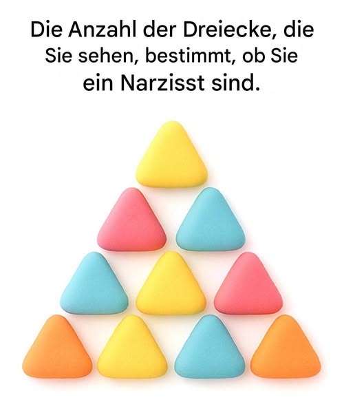 Auf den ersten Blick wirkt das obige Bild simpel: ein paar bunte Dreiecke übereinandergestapelt. Doch bei genauerem Hinsehen ändert sich die Zählweise. Manche sehen neun Dreiecke, andere dreizehn, und einige behaupten sogar, mehr als zwanzig zu erkennen, wenn sie alle versteckten Formen zusammenzählen.