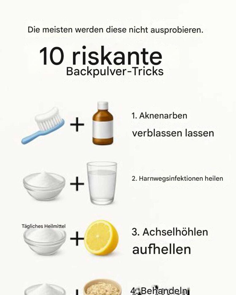 Backpulver oder Natriumbicarbonat ist ein gängiges Haushaltsprodukt und für seine Vielseitigkeit bekannt. Die meisten Menschen verwenden es zum Backen oder als Reinigungsmittel, doch es gibt zahlreiche unkonventionelle Anwendungen, die viele aufgrund ihrer ungewöhnlichen Natur oder potenzieller Risiken nur ungern ausprobieren. Dieser Artikel untersucht zehn solcher Backpulver-Tricks, die zwar faszinierend sind, aber oft mit Vorsicht genossen werden.
