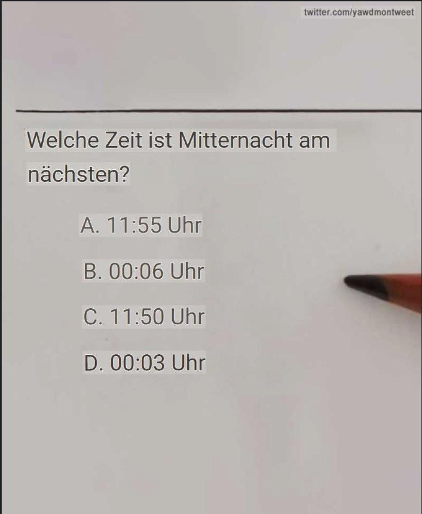 Darüber hinaus regte die Formulierung der Frage die Teilnehmer dazu an, kreativ zu sein.Die Abfrage, die mehr als 1,4 Millionen Mal angesehen wurde, bot vier Optionen: A. 11:55 Uhr, B. 12:06 Uhr, C. 11:50 Uhr und D. 12:03 Uhr. Viele Benutzer schienen verblüfft und äußerten verschiedene Antworten in den Kommentaren.