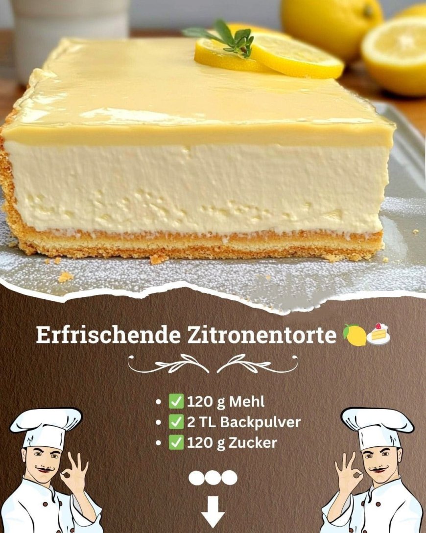 Es gibt Kuchen, die schmecken gut – und dann gibt es Torten wie diese: Eine Zitronentorte, die schon beim ersten Bissen auf der Zunge schmilzt und einen Hauch von Sommer auf den Gaumen zaubert. Ihre leichte, fruchtige Frische kombiniert mit cremiger Leichtigkeit macht sie zum idealen Begleiter für warme Tage, Kaffeerunden oder
