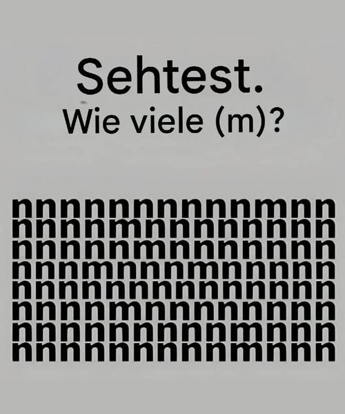Das Internet ist voll von visuellen Rätseln und Denksportaufgaben, und eine der neuesten Herausforderungen, auf die alle achten müssen, ist der “Sehtest”, bei dem die Teilnehmer darauf achten sollen, wie oft der Buchstabe “m” in einem Raster mit “n” auftaucht.