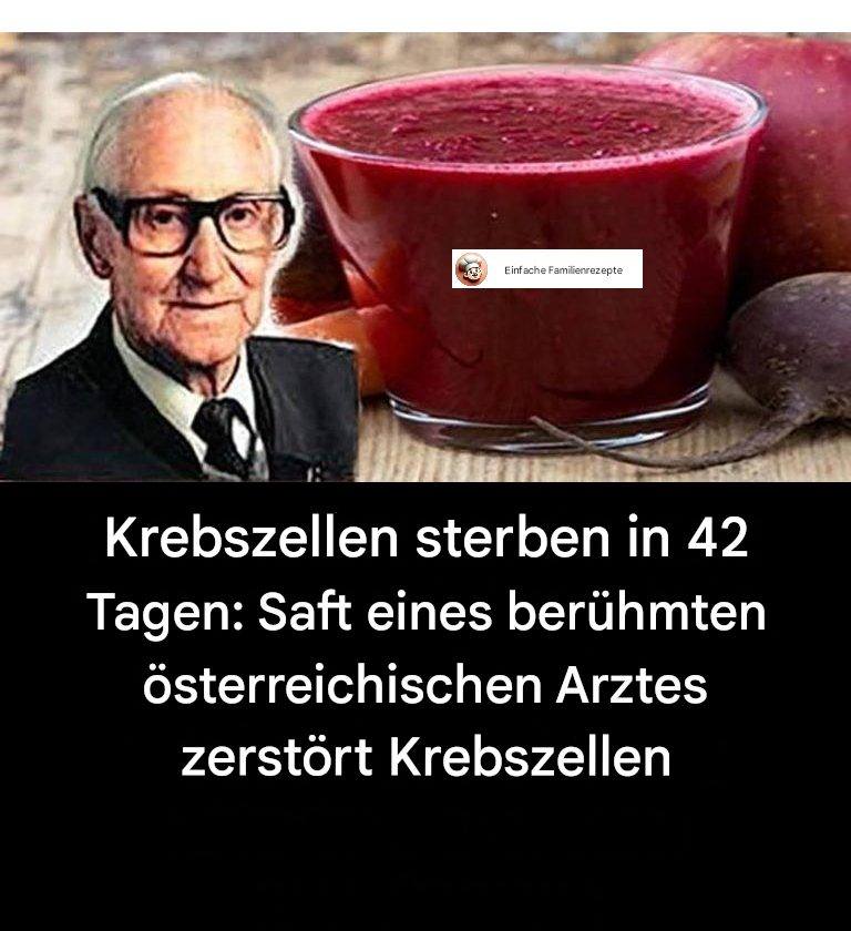 Er entwickelte diesen einzigartigen Saft, der außergewöhnliche Ergebnisse bei der Behandlung von Krebs liefert. Er hat mehr als 45.000 Menschen mit Krebs und anderen unheilbaren Krankheiten mit dieser Methode behandelt. Breuss sagte, Krebs könne nur mit Hilfe von Proteinen überleben.