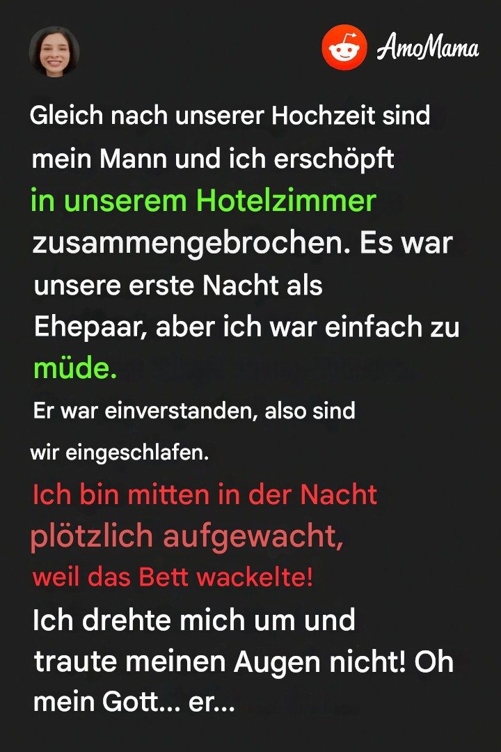 Ich wälzte mich benommen im Bett hin und her. „Vor ein paar Wochen?“, wiederholte ich stirnrunzelnd und versuchte zu begreifen, wie ein Baby in unserer Hochzeitsnacht in unserem Zimmer auftauchen konnte.