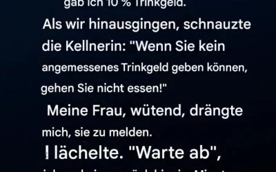 Meine Frau und ich aßen einmal in einem Restaurant, in dem der Service sichtlich überfordert war. Ich habe trotzdem 10…