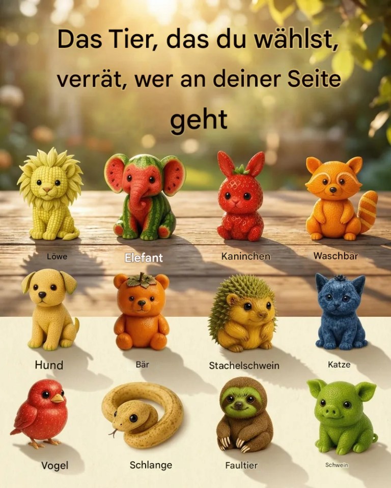 Das Poster hing wie eine kleine, vergessene Einladung im stillen Wartezimmer. „Das Tier, das du wählst, verrät, wer an deiner Seite geht“, stand darauf, umgeben von sanften, spielzeughaften Tieren – Löwen, Kaninchen, Hunden, Vögeln und anderen –, die alle mit großen, geduldigen Augen nach vorn blickten. Die Leute gingen achtlos daran vorbei, doch Daniel, der mit verschränkten Händen da saß und dessen Leben sich ungewöhnlich schwer anfühlte, blieb von dem Bild berührt. Es waren nicht die Farben oder das verspielte Design. Es war die Vorstellung, dass vielleicht, selbst wenn man sich allein fühlt, etwas – oder jemand – die ganze Zeit still an der Seite war.
