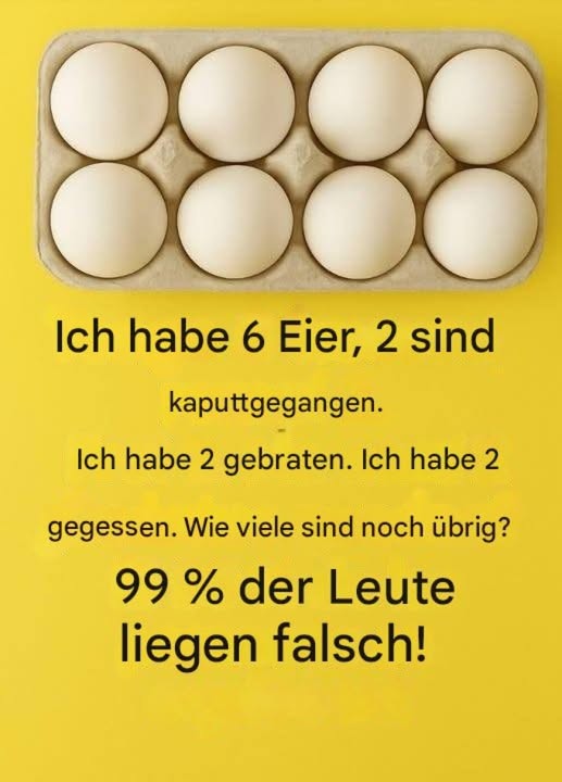 Manchmal sind es nicht die komplizierten mathematischen Gleichungen oder wissenschaftlichen Fragen, die uns aus dem Konzept bringen – sondern die ganz einfachen Aufgaben, die unser logisches Denken herausfordern. Genau so ein Fall ist dieses Rätsel mit sechs Eiern, das derzeit in sozialen Medien für Aufsehen sorgt. Auf den ersten Blick scheint die Frage kinderleicht. Doch während viele spontan antworten, zeigt sich schnell: Die Mehrheit liegt falsch. Warum? Weil wir oft zu schnell urteilen, statt genau zu lesen und analytisch zu denken.