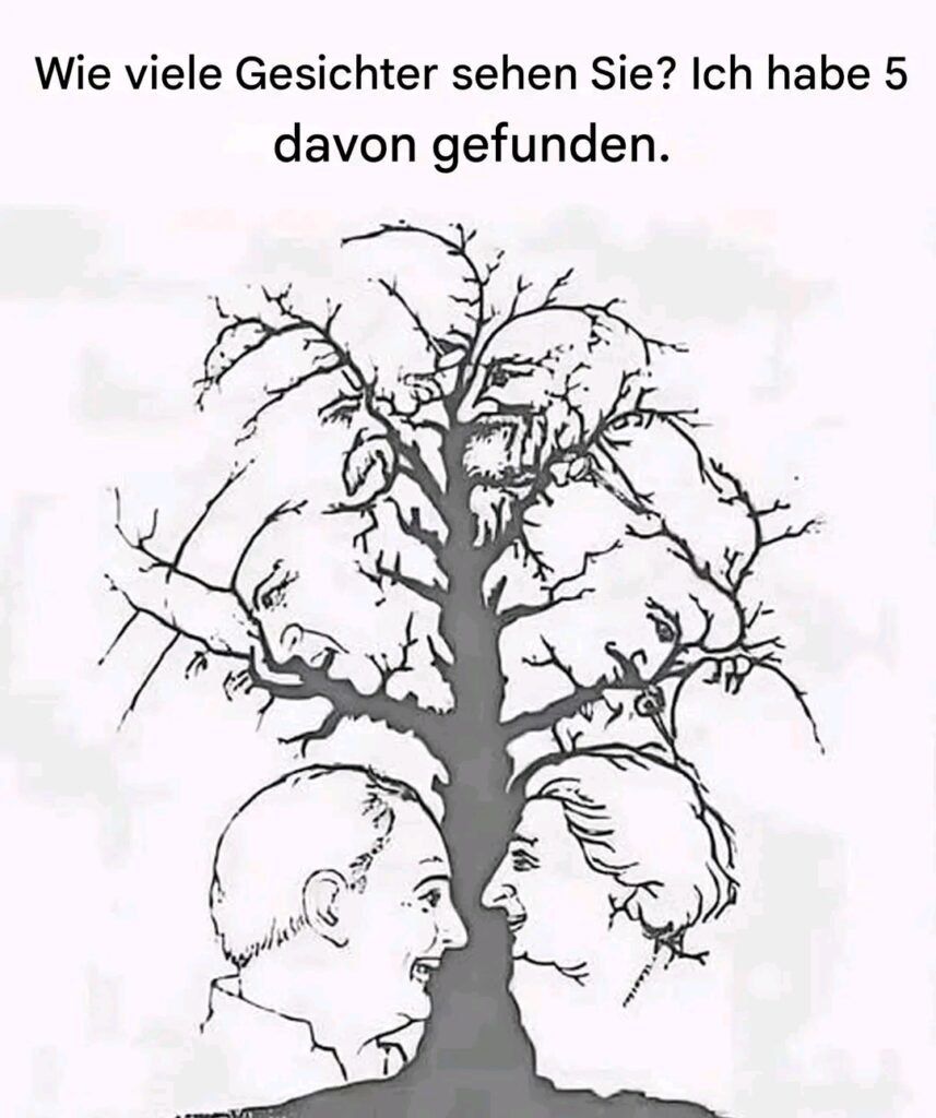 Wie viele Gesichter siehst du in diesem Baum? Nur einer? Zwei? Oder vier? Sie werden überrascht sein! Wenn Sie die optische Täuschung bereits verwirrt hat, dann sind Sie bei weitem nicht allein. Aber wenn Sie denken, dass es zu einfach ist, seien Sie darauf vorbereitet, auf einer ganz neuen Ebene herausgefordert zu werden. Die nächste Frage ist schwieriger: Können Sie sie alle nennen?